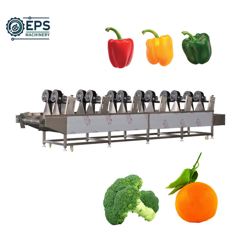 --- Water Spray or Shower: High-pressure water jets spray water over the produce to clean them.